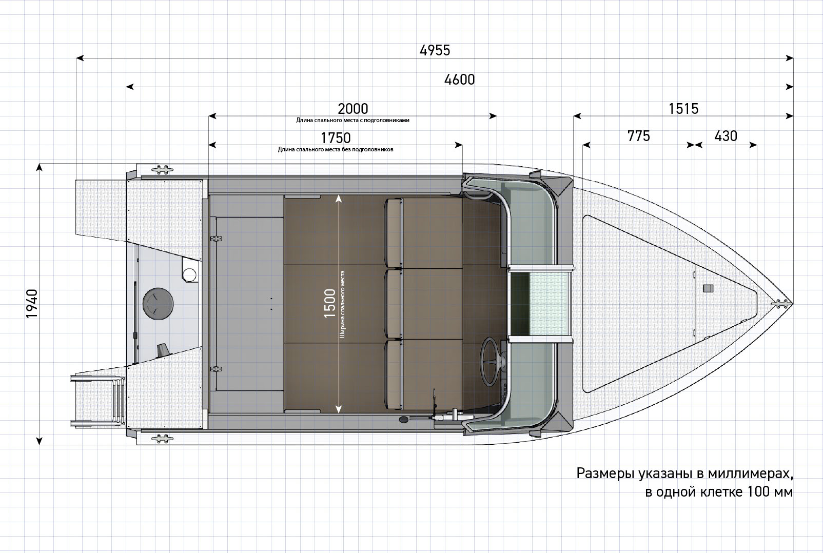Одна из главных особенностей моторных лодок нашего Завода – возможность организации комфортных спальных мест на уровне сидений. В Салют 460 длина спального места 1,75 м, а с подголовниками-удлинителями достигает 2-х метров при ширине 1,5 метра. Согласитесь, гораздо приятнее спать в лодке на достаточной высоте от воды, мягко покачиваясь на волнах, чем в душной палатке рядом с холодной землёй, двухвостками, змеями и мышами. Кстати, в лодке всегда теплее в холод и прохладней в жару, чем на берегу, «греет» вода через днище.