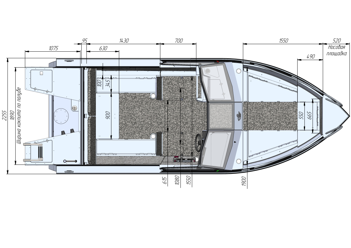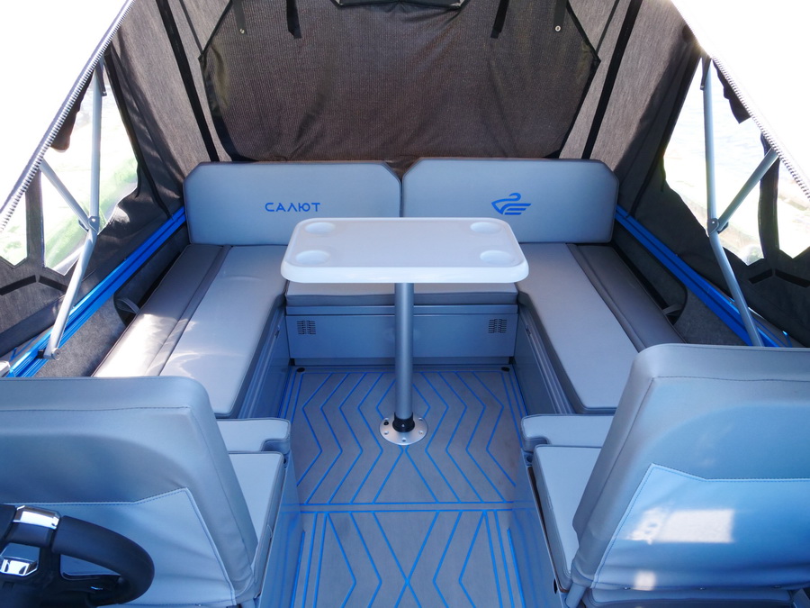 Благодаря максимальному использованию пространства и возможности установки ходового тента вы сможете насладиться отдыхом в любую погоду, загорать, лежа на носовых диванах боурайдера или палубе крышки боудек, прилечь или переночевать на диванах основного кокпита. Возможность установки дополнительного оборудования, такого как держатели для спиннингов, светодиодные фары, столик, множество рундуков для хранения вещей, делает эти лодки максимально удобными и функциональными.