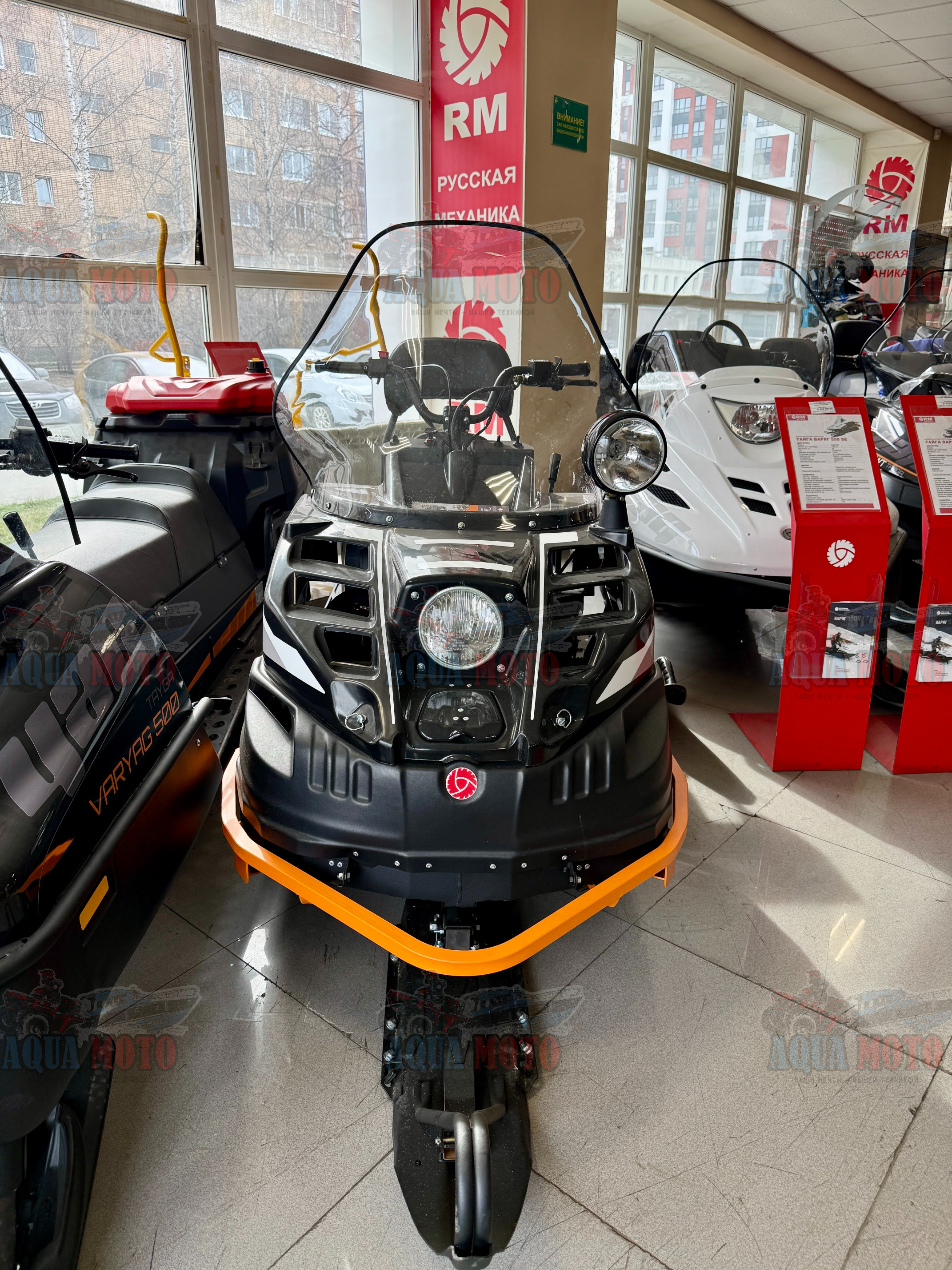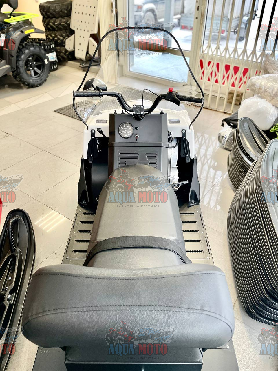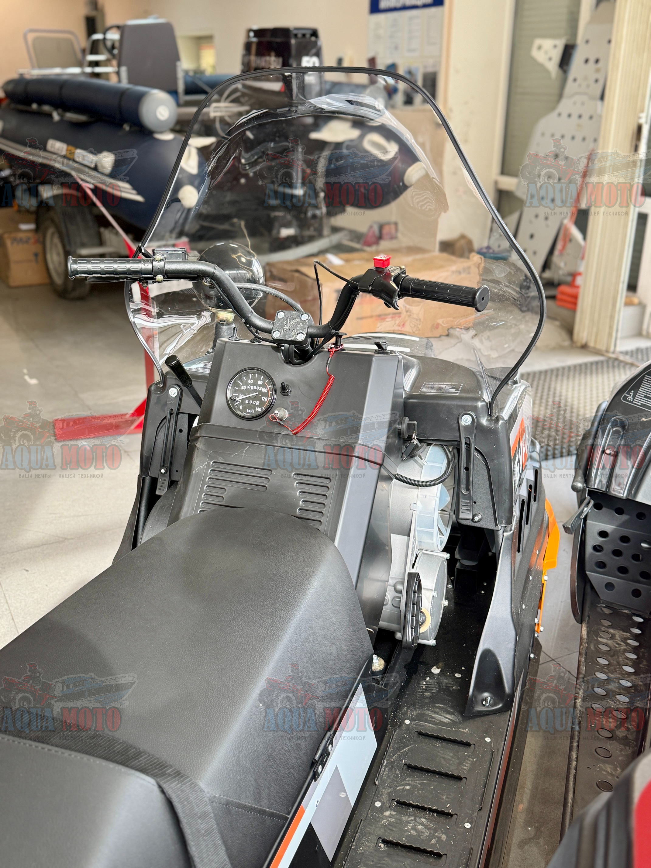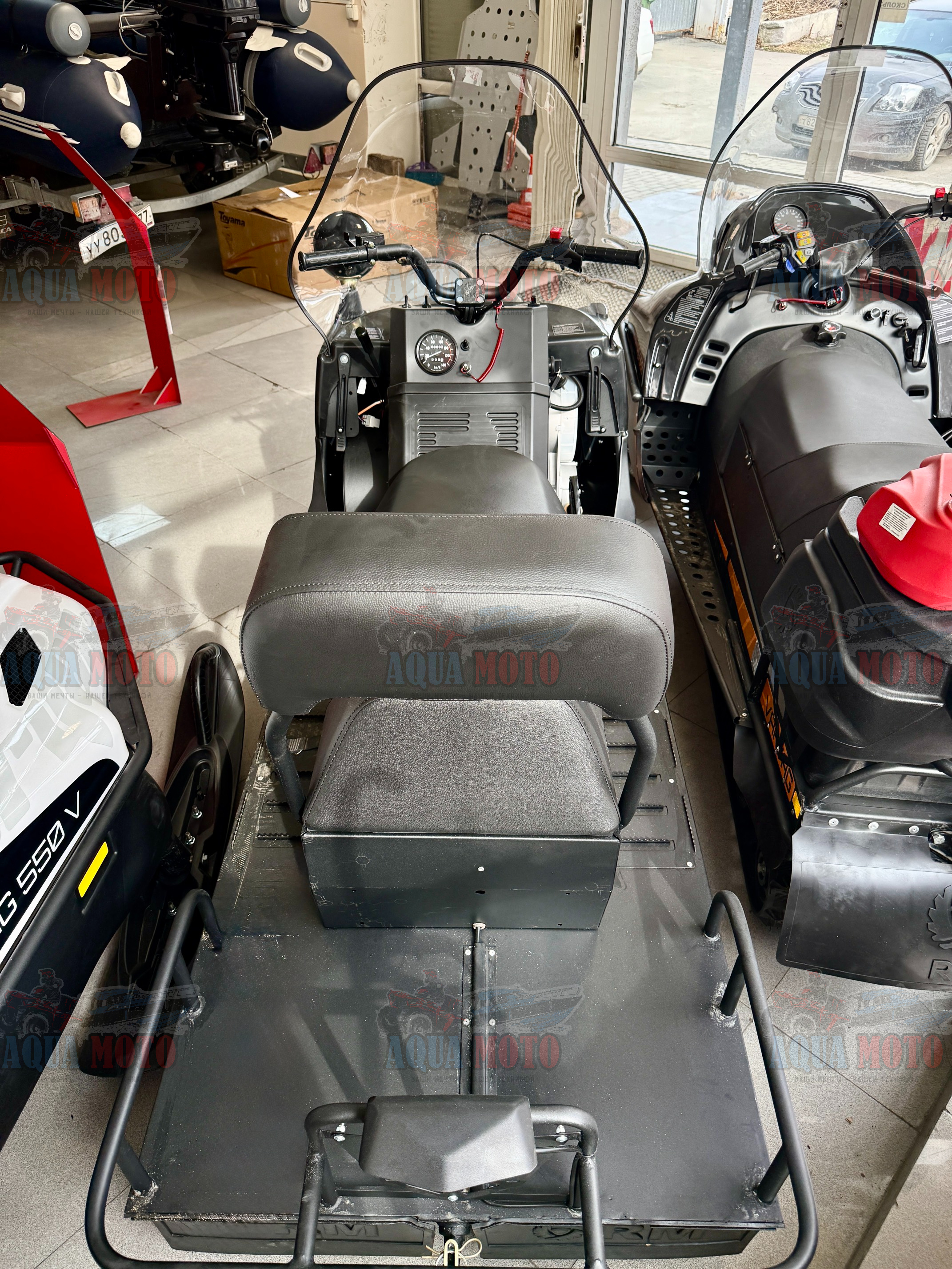 Модель «Буран Лидер» отличается формованным ветровым стеклом, выполненным из двухмиллиметрового ударопрочного и морозостойкого поликарбоната. Предлагаемая геометрия стекла исключает возможность его деформации, улучшает аэродинамические качества снегохода.