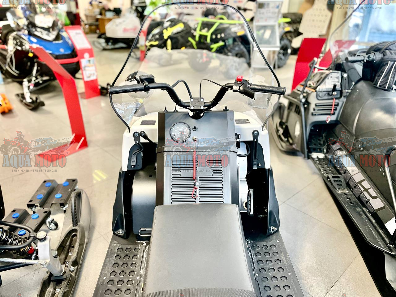 У модели высокий руль с подогревом рукояток и курка газа. Для большего удобства водителя на руль перенесены блок переключения светового режима и кнопка экстренной остановки двигателя.